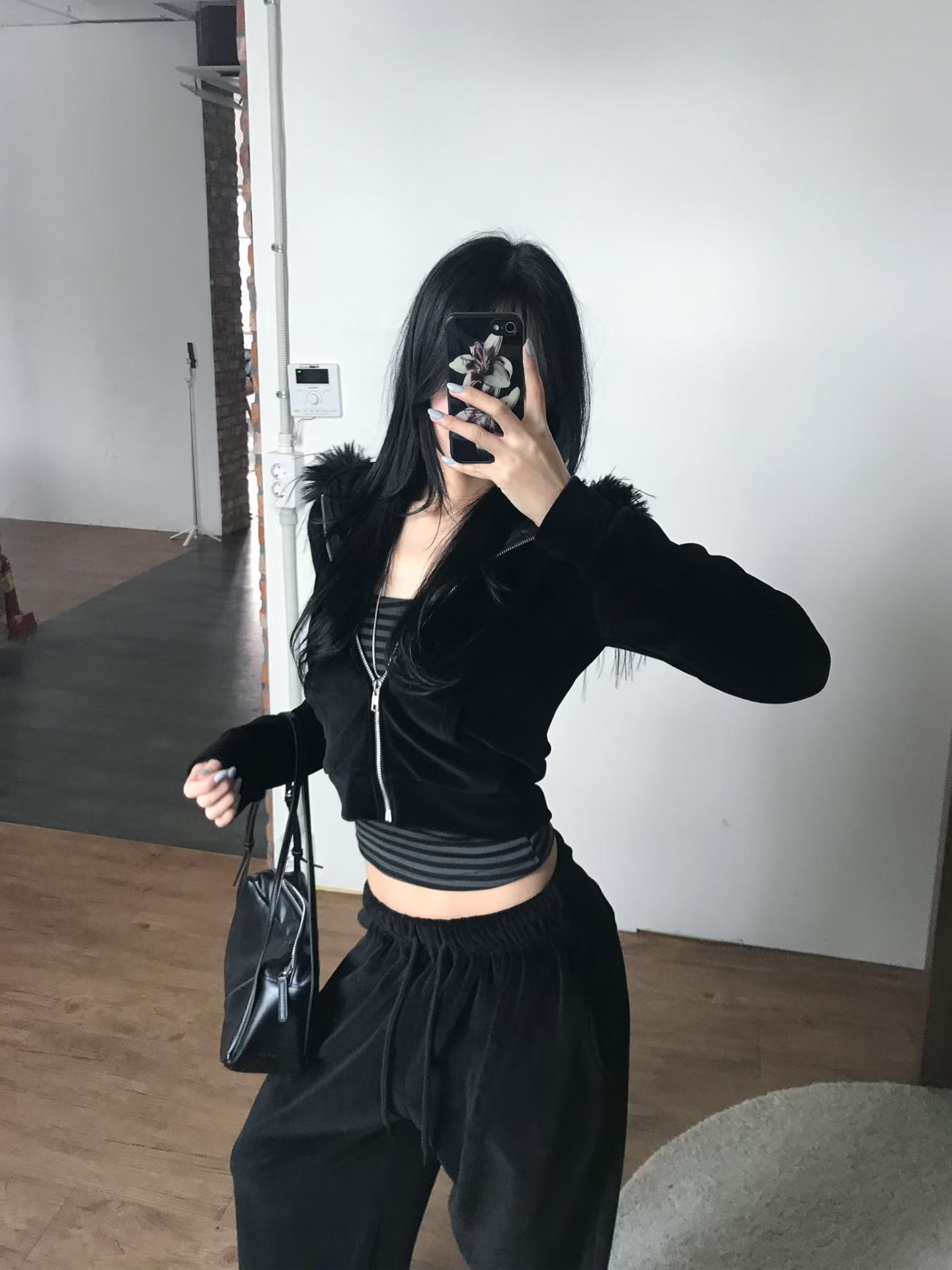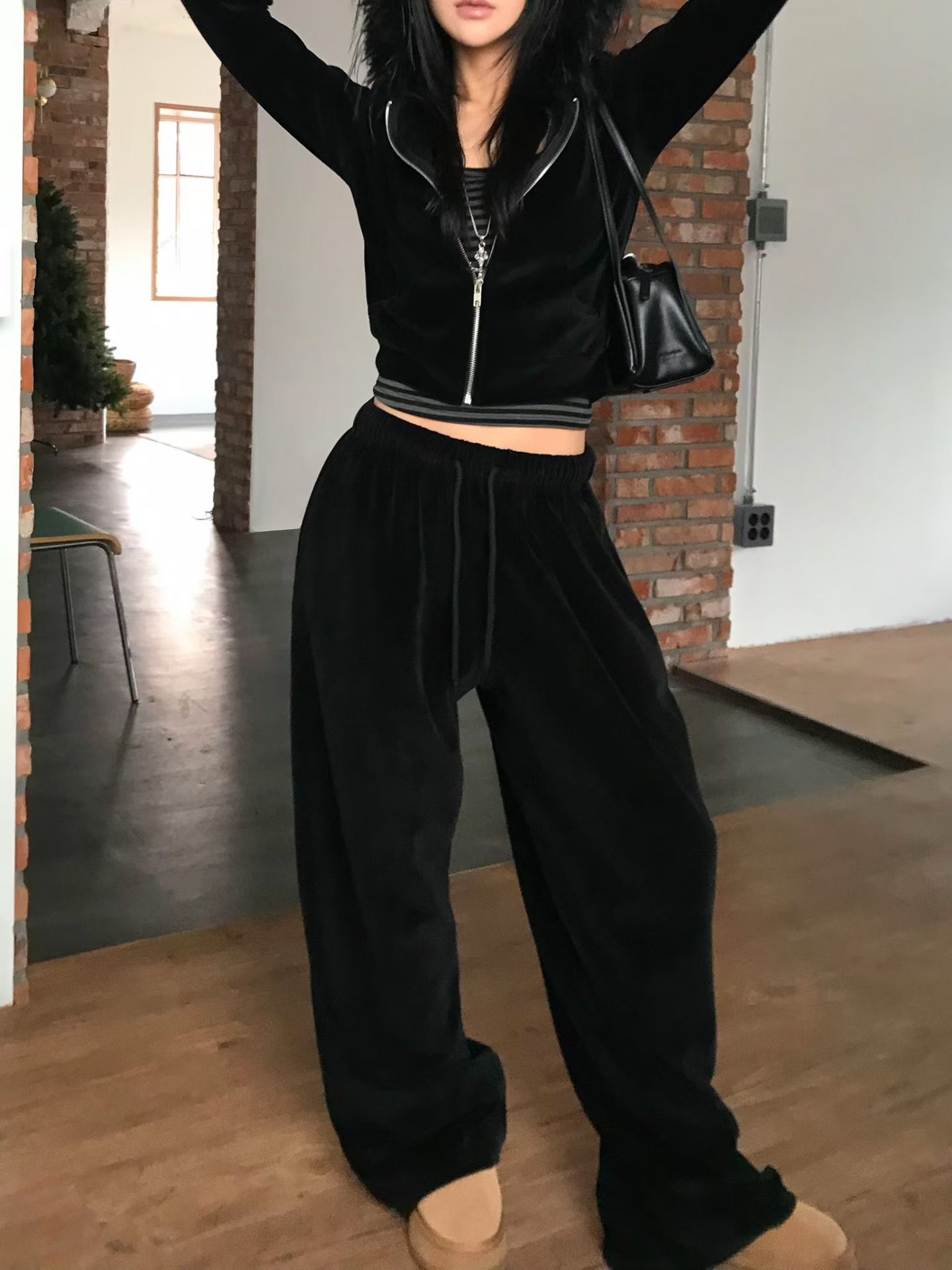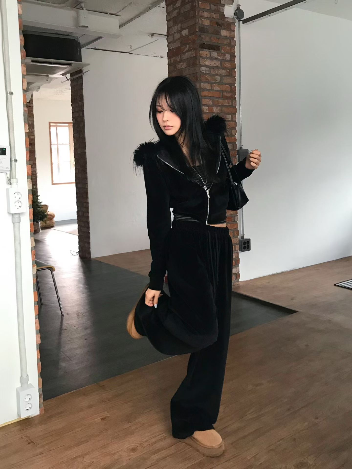 套裝價 配絨面休閑褲(黑外套黑褲)