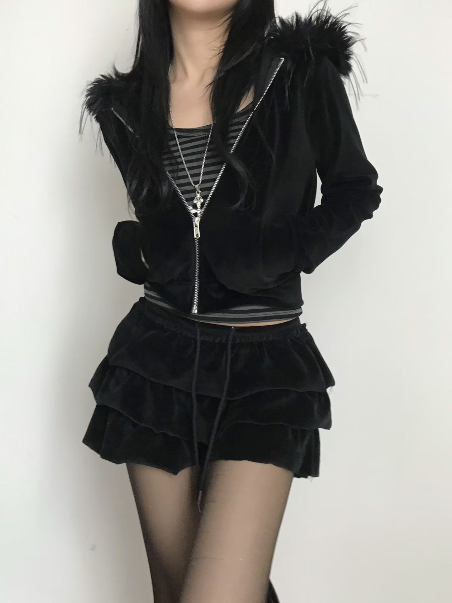 套裝價 配三層絨面蛋糕裙褲(黑外套黑裙褲)