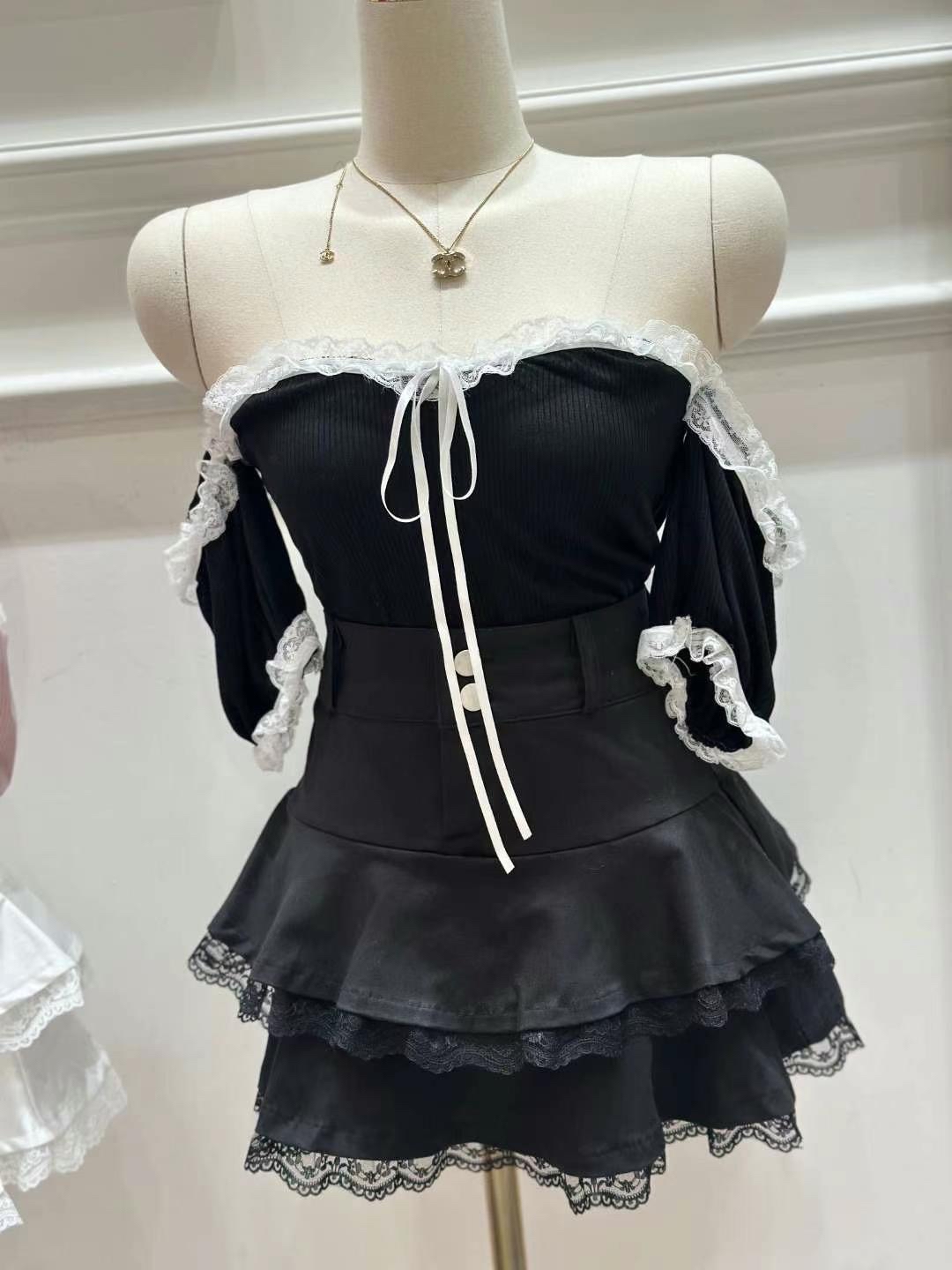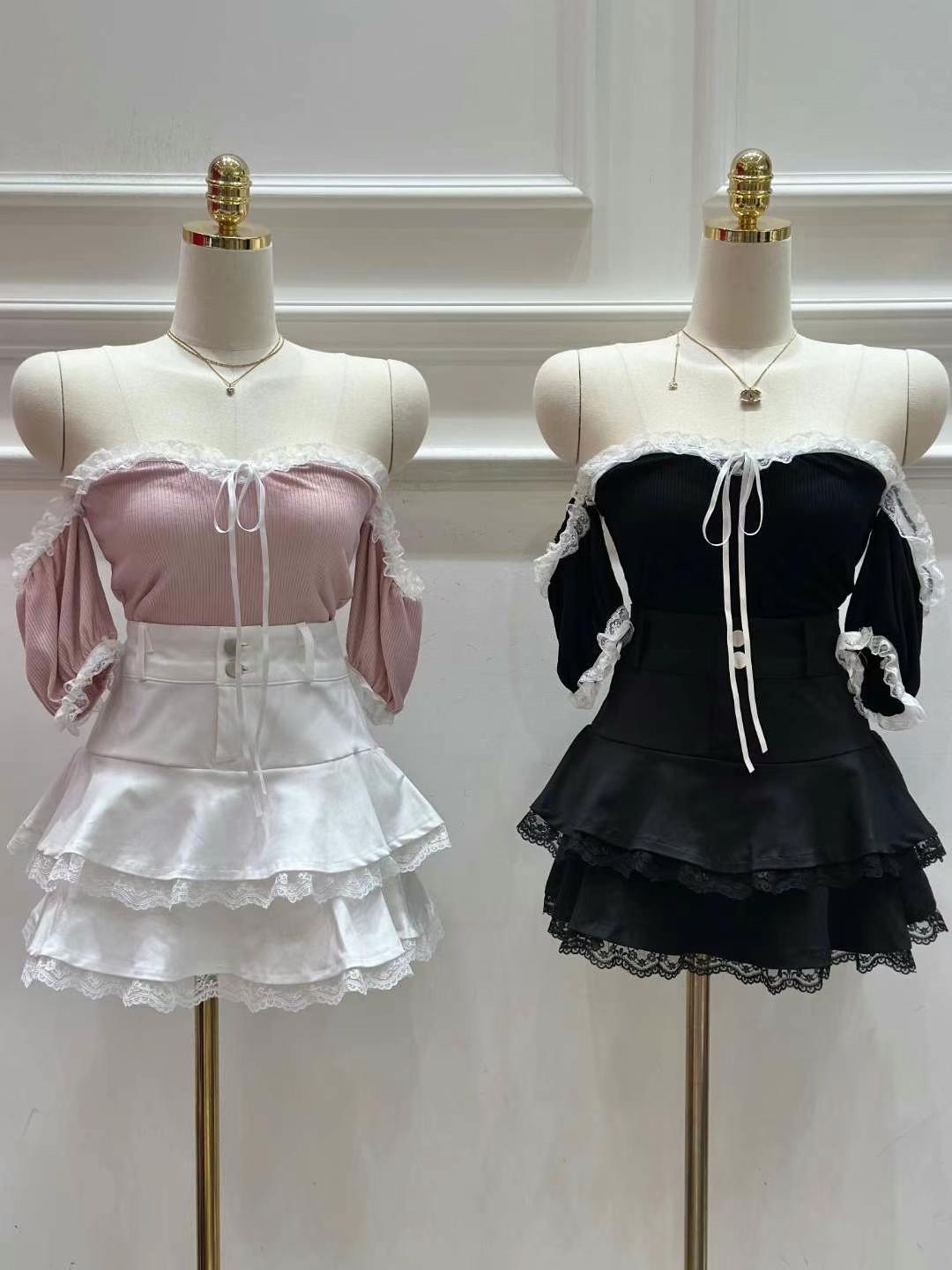 可愛性感調皮集於一身嘅上衣 上身有黑色 灰色 粉色✨ 下身 黑 白 兩隻色 Top $215 , Skirts$295 Set $499 下身一套咁樣配都超級可愛🥺😭❤️ Skirts ( S / M ) size chart ( cm ) : Waist 34 / 36 Length 38 / 39 Hip 49 /51 裙子採用A字型設計 可以有修飾大腿線條 塑造視覺上更加纖瘦的效果喔
