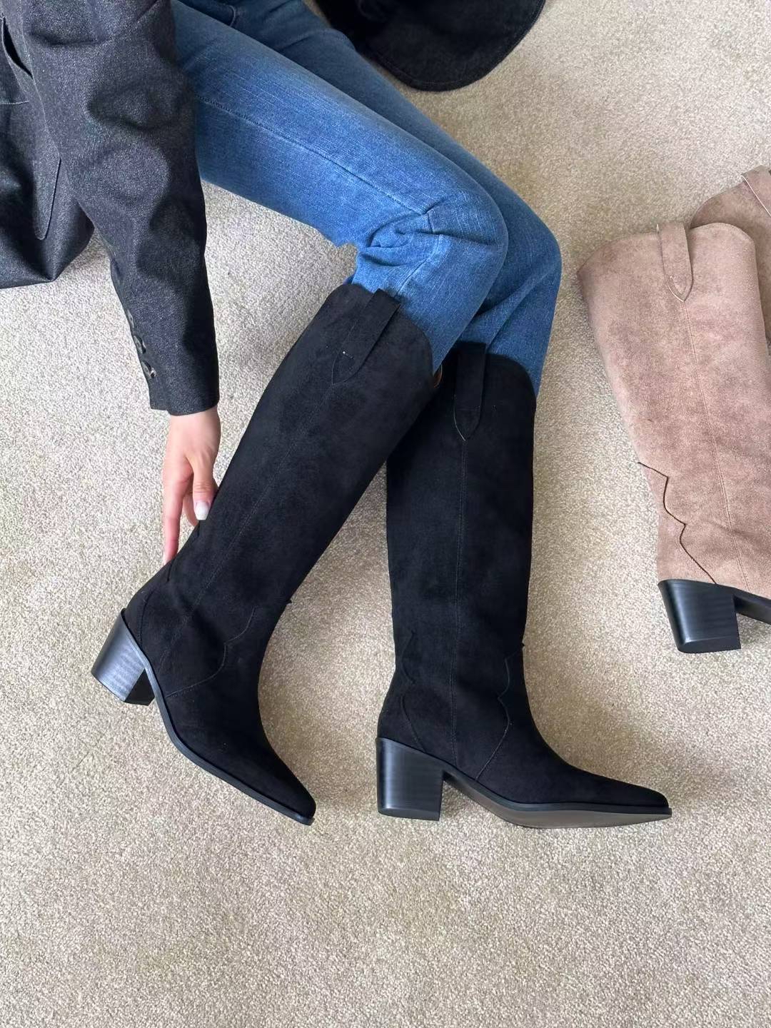 CP值超高🤍絨面兩色入牛仔靴
