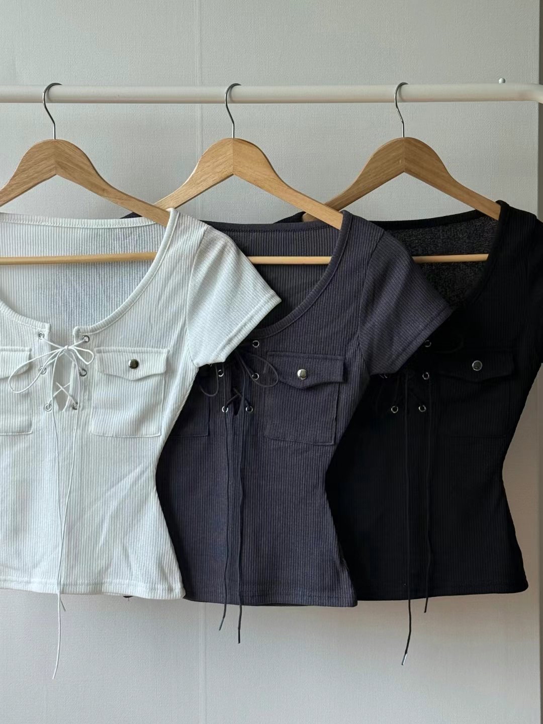 大彈性 適合上身豐滿女仔♥︎ 而且仲做咗兩個pocket設計 視覺上更佳顯胸大!! 仲有Deep V綁帶設計 ㅠㅠ 真係勁正